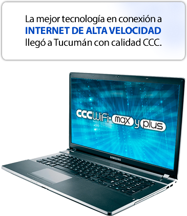 CCC incorpora CCCWiFi·max y Plus, un servicio de banda ancha por red de cable, más rápido, eficiente y confiable que el servicio de acceso telefónico que hoy conocés. La información viaja a alta velocidad a través de nuestras redes interactivas de fibra óptica hasta el módem WiFi en tu casa.